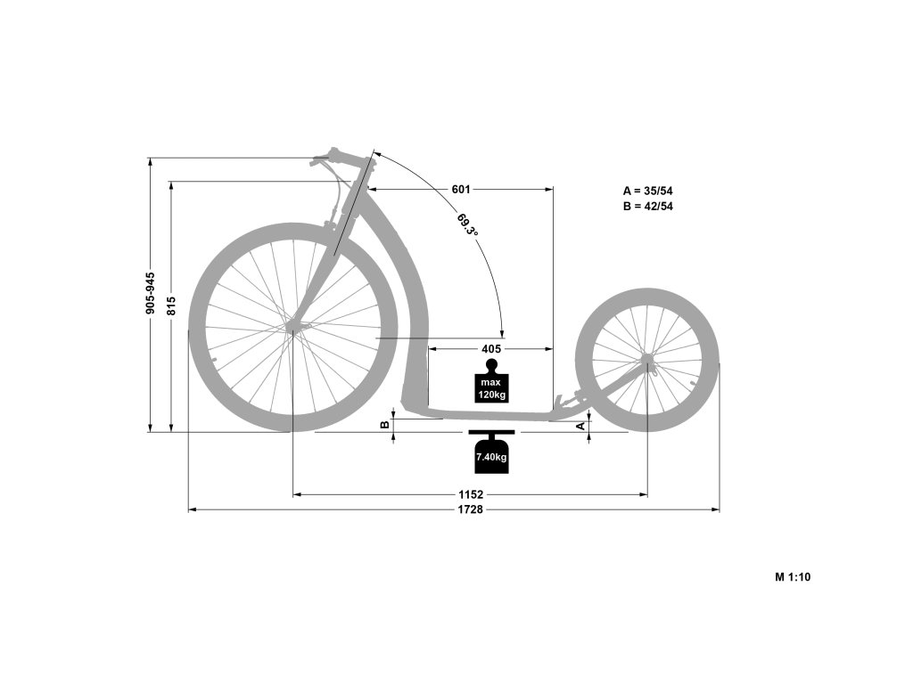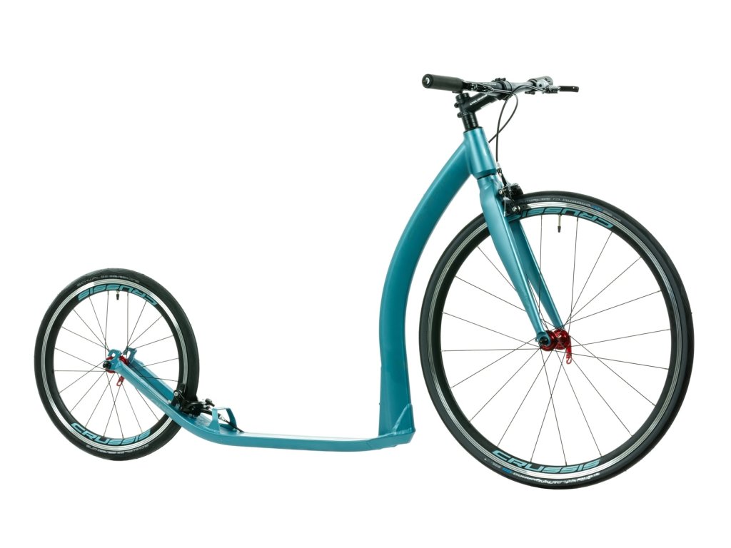 Jednobarevná verze hliníkové silniční koloběžky ROAD s koly 28×20“ a hmotností pouhých 7,40 kg.