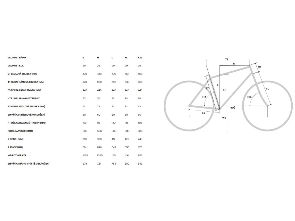 | Délka představce | S:70 mm, M:80 mm, L:90 mm, XL:100 mm, XXL:110 mm |