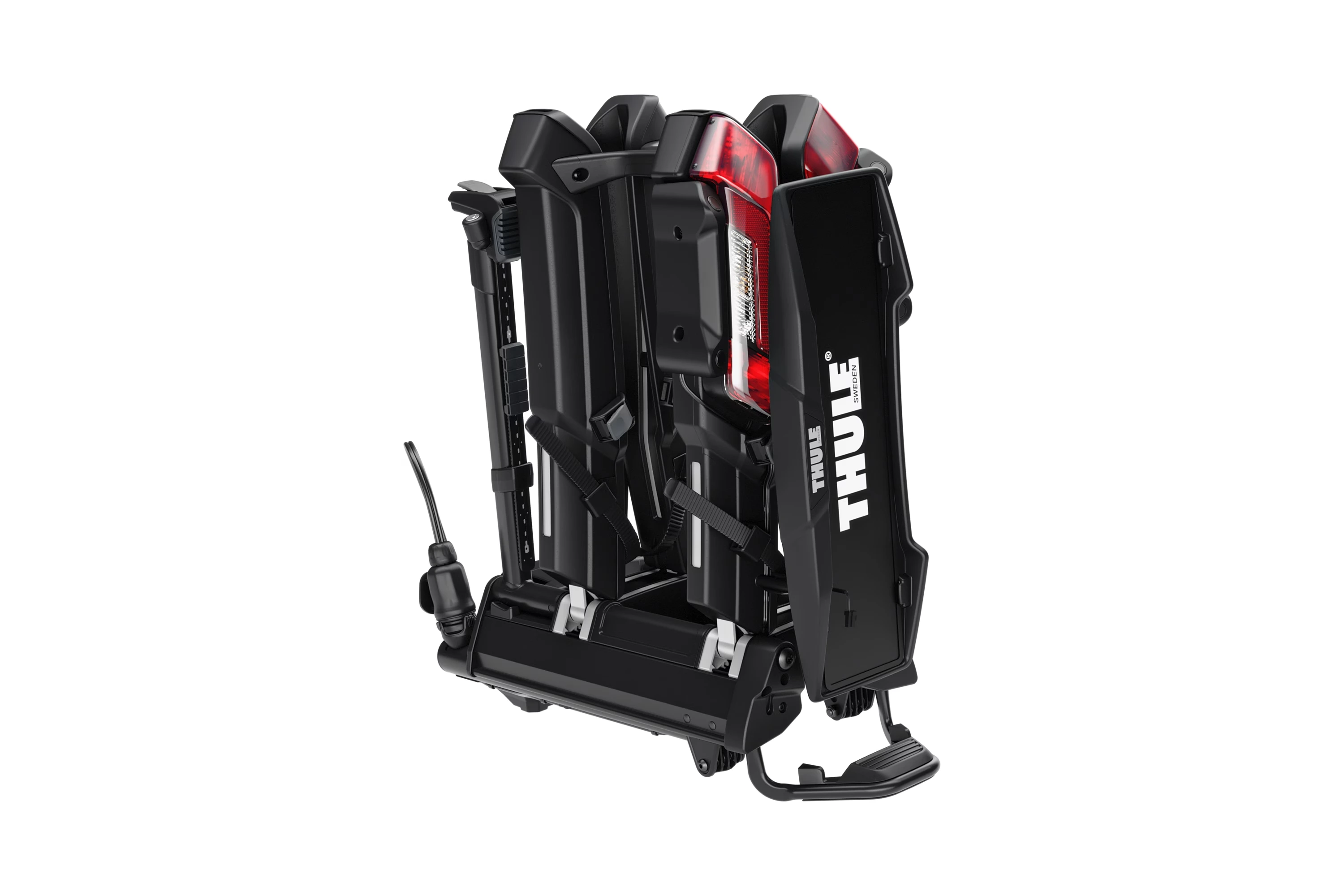 Při upevnění kol je možný přístup do zavazadlového prostoru pomocí důmyslného naklápění ovládaného pedálem. Nejsou-li na nosiči upevněná kola, je zavazadlový prostor přístupný bez naklápění nosiče