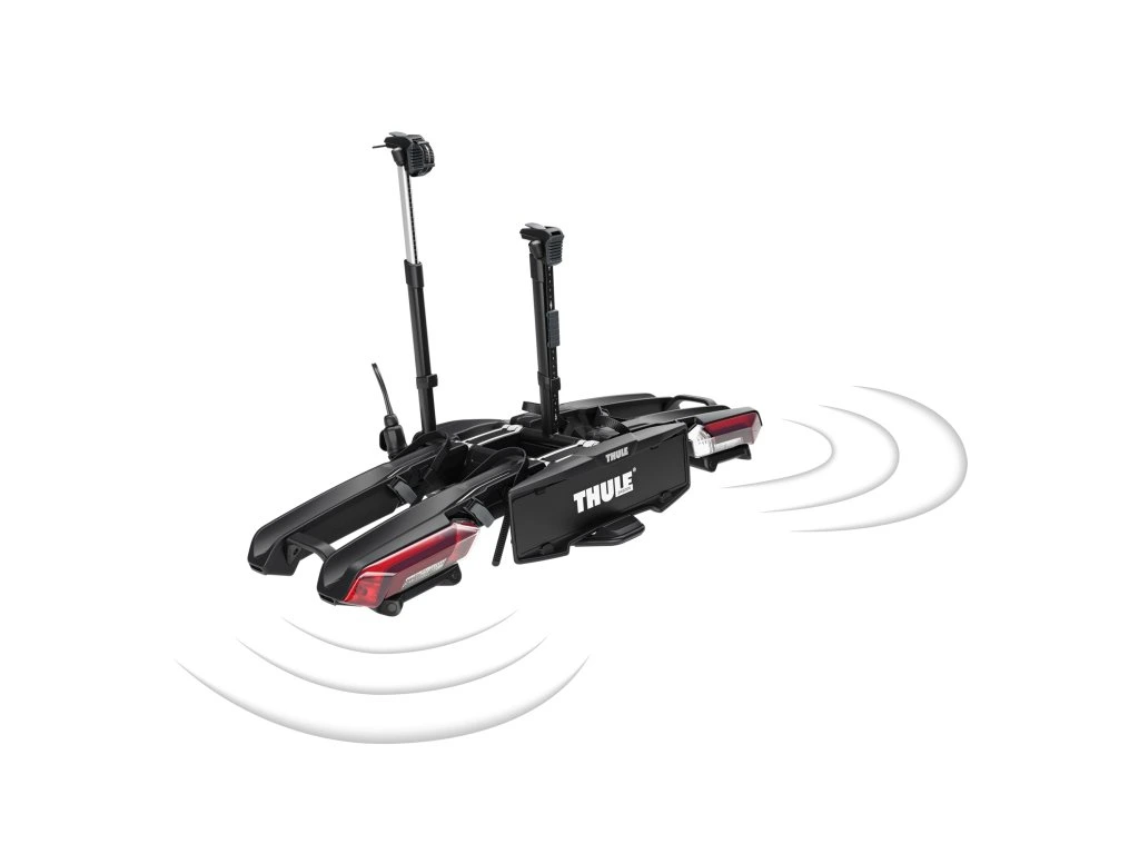 Jednotka uvnitř vozu poskytuje jasná zvuková a vizuální upozornění při couvání. Napájí se přes USB port vašeho auta a bezdrátově se připojuje k nosiči kol. Zároveň funguje jako most k vašemu smartphonu přes Bluetooth, což umožňuje aktualizace a pokročilá nastavení prostřednictvím aplikace Thule.